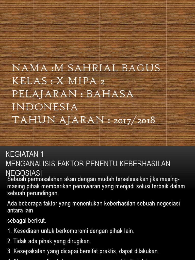 Menelaah struktur dan kebahasaan pada puisi rakyat (pantun,gurindam,syair)~bahasa indonesia kls vii. Teks negosiasi merupakan sejenis teks yang berbentuk interaksi sosial dengan fungsi untuk mencari kesepakatan di antara pihak yang mempunyai kepentingan tetapi ada juga yang berbentuk dialog antar dua tokoh / lebih dengan kepentingan yang berbeda. Mengutip dari situs kementerian pendidikan dan kebudayaan (kemdikbud), teks negosiasi bisa juga. Contoh teks negosiasi pemecahan konflik. Sebagai sebuah teks, teks negosiasi memiliki beberapa unsur yang membangun teks tersebut.