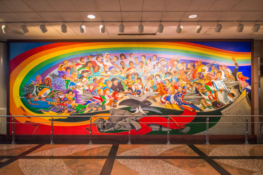 Denver Airport Murals, Denver International Airport Boasts Worthy Art Collection Of Permanent Temporary Pieces Arts Entertainment Gazette Com - Some people, after seeing these paintings, create conspiracy theories, while others are just delighted with the multitude of colors and interesting elements of the murals.. The murals and monuments at the denver airport have caused great concern for travelers and researchers alike. Denver international airport has four murals, all of which have been the topic of conspiracy theorists and debate. Leo tanguma's in peace and harmony with nature references the social realist murals of mexico while addressing a modern theme: One of the most startling things in the denver airport are the murals that line the walls on level 5 of the jeppesen terminal. The denver airport conspiracy theories began with the building's bloated budget and prolonged construction.